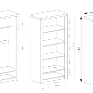 Jednoduchá, velká dvoudveřová šatní skříň s kovovými úchytkami. Obsahuje 58 cm hlubokou zásuvku. Součástí skříně je také tyč o délce 92 cm – ideální pro využití volného prostoru k zavěšení oblečení. Tato skříň jistě splní vaše očekávání.K dispozici ve třech barvách: Světlý jasan,Tmavý jasan,Kraft bílá