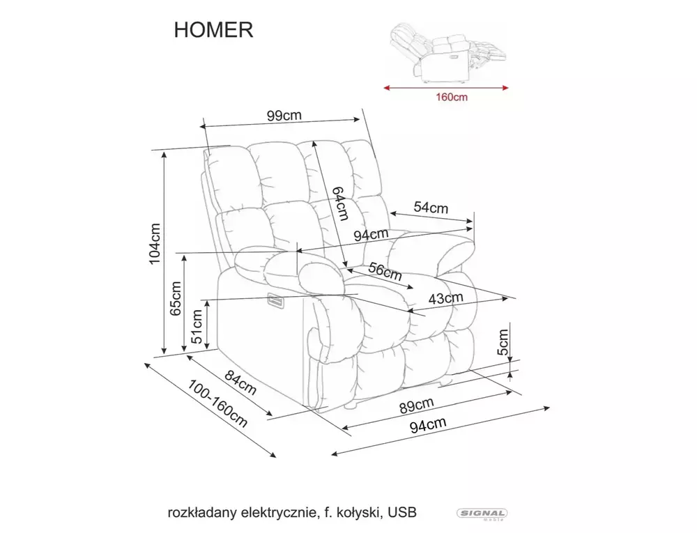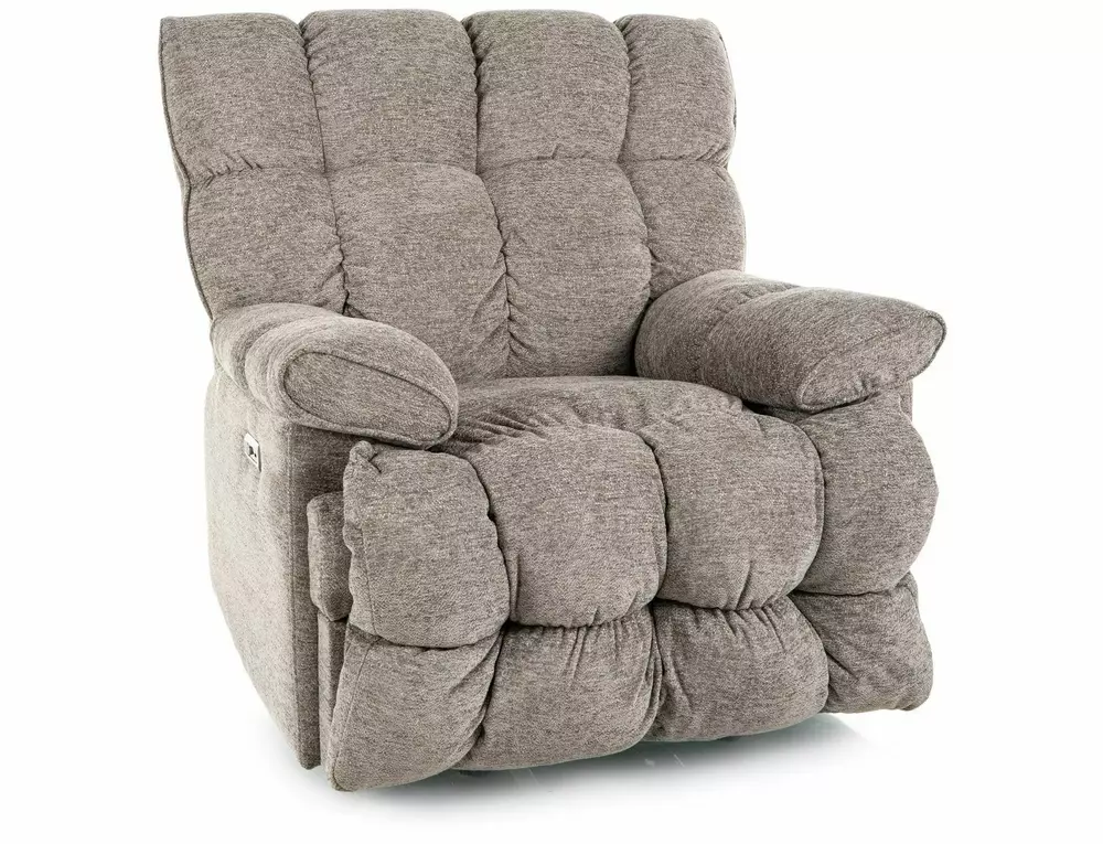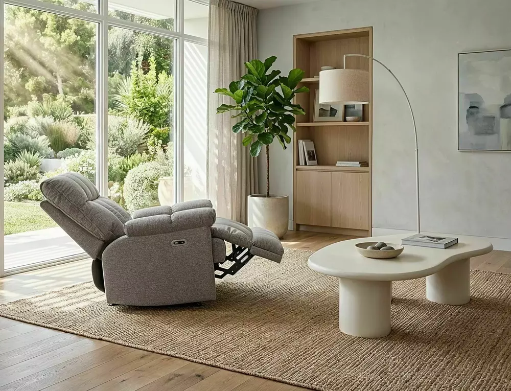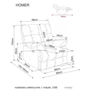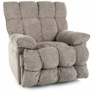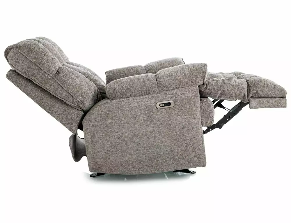 Elektricky polohovatelné křeslo s funkcí kolébky, látka: Raven, barva: šedá 07. Možnost kolébky funguje ve sklopené poloze, USB port.