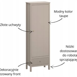 Kolekce KLEO je jedinečnou kombinací boho a skandinávského stylu, ideální pro ty, kteří oceňují přirozenost a harmonii. V této sérii najdete nábytek, který se skvěle hodí jak do obývacího pokoje, tak do ložnice. Charakteristickým prvkem jsou rýhovaná čela zásuvek, která dodají každému interiéru jemnou eleganci. Kolekce je udržována v teplém odstínu taupe, který do místnosti vnese klid a útulnost. Zlaté úchytky decentně podtrhují eleganci a dodávají celé kolekci na sofistikovanosti. Řada zahrnuje psací stůl, komodu, komodu se skříňkami a zásuvkami a obývací stůl, z nichž každá je navržena s ohledem na funkčnost a estetiku.