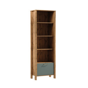 Přirozená barevnost teplého dekoru dubu Wotan na korpusu nábytku v kombinaci s jednobarevnou béžovou nebo zelenou barvou podle vašeho výběru činí kolekci přirozeně krásnou.