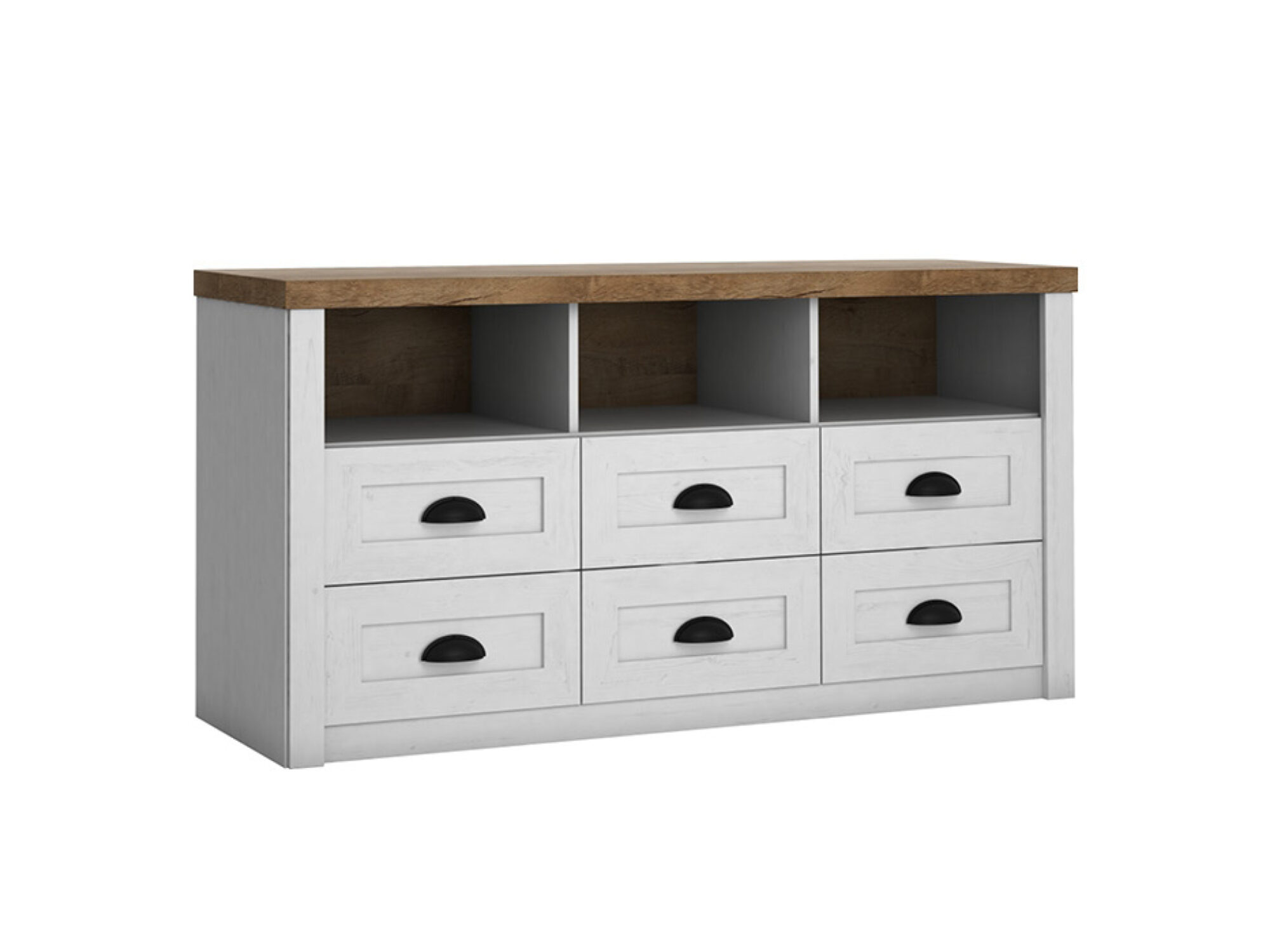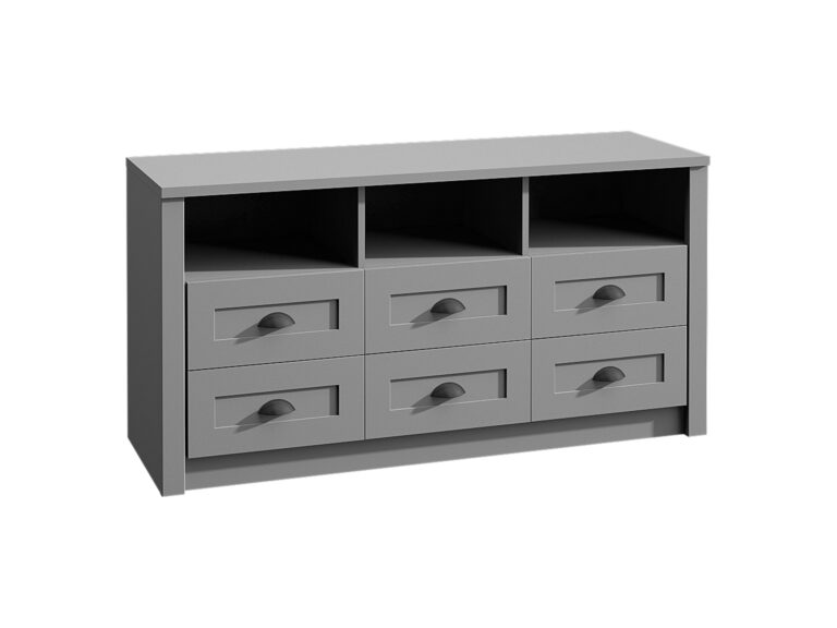- šest prostorných zásuvek, tři otevřené výklenky nad zásuvkami