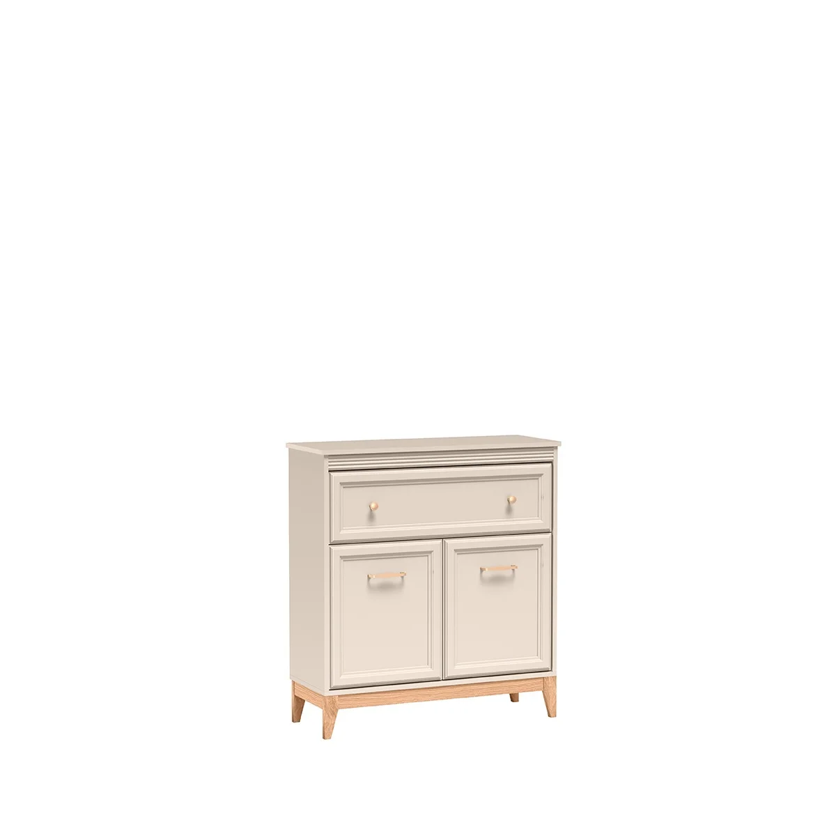 Kompaktní, elegantní a mimořádně praktická komoda WINDSOR W-19 je ideální volbou do předsíně, kde záleží na funkčnosti i stylu. Vyznačuje se jemnou kašmírovou barvou, dubovými nohami a dokonale zpracovanými detaily, které vytvářejí soudržný celek s nadčasovým charakterem.