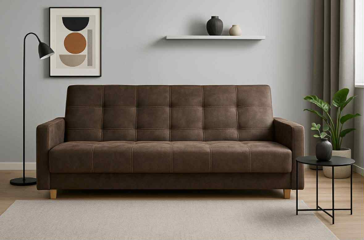 * Šířka: 205 cm * Hloubka: 92 cm * Výška sedadla: 42 cm * Plocha na spaní: Tato moderní pohovka byla navržena s důrazem na každý detail. Spojuje v sobě eleganci a funkčnost – díky použití dvojitých pružin na sedáku zaručuje vysoký komfort užívání a díky svým kompaktním rozměrům (205 cm) je ideální i do menších interiérů.“