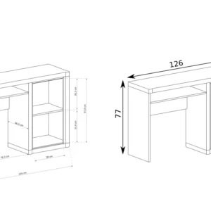 Krásný psací stůl se skvěle hodí do pokoje pro mladé nebo do kanceláře. Nábytek nám nabízí výsuvnou polici na klávesnici od počítače a skříňku s knihovnou. To usnadní práci a učení na dálku. Psací stůl nám umožňuje dobře uspořádat věci a dokumenty ve skříni a zároveň mít dostatek prostoru pro práci a studium. Díky svému originálnímu stylu, zdobenému černými ozdobnými lištami a kovovými úchyty, snadno zapadne do designu každé místnosti. K dispozici ve dvou barvách. Stabilní konstrukce zaručuje dlouholetou úspěšnou práci se stolem.