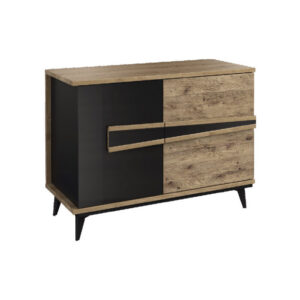 Kolekcja Etna prezentuje unikalne meble do salonu, jadalni i sypialni, wykonane z litego drewna i naturalnej okleiny. Charakteryzuje się ona fascynującymi kształtami inspirowanymi stylem industrialnym oraz oryginalną paletą kolorystyczną, gdzie naturalny dąb łączy się z głęboką czernią szkła. Drewniane elementy, wykonane z dębu, zostały starannie strukturyzowane i poddane procesowi barwienia, co nadaje im wyjątkowy charakter. Metalowe nogi i oryginalne uchwyty z czarnego szkła doskonale odzwierciedlają estetykę kolekcji, dodając lekkości i designerskiego wyrazu meblom. Blaty stołów są nie tylko trwałe i odporne na wysokie temperatury oraz alkohol, ale także prezentują się elegancko.