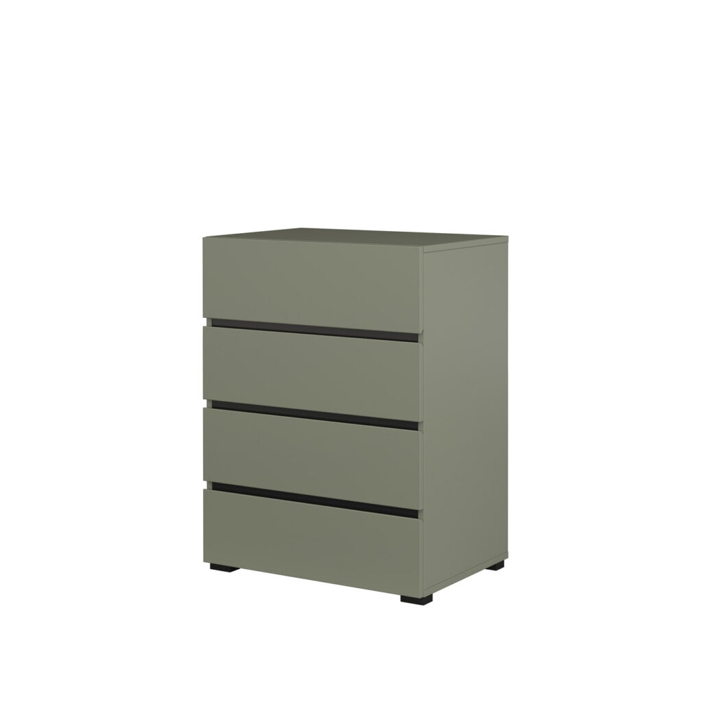 Dostępna jest w czterech starannie dobranych wariantach kolorystycznych:klasycznej bieli,ciepłym dębie wotan,nowoczesnym congo oraz modnej zieleni.Subtelny akcent obrzeża w kolorze czarny onyx nadaje meblom elegancki a zarazem charakterystyczny wygląd.
