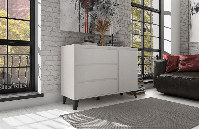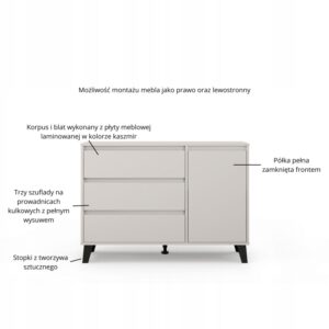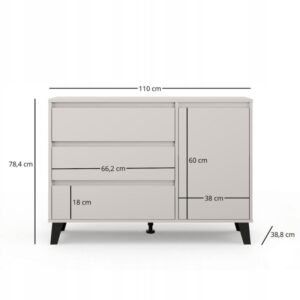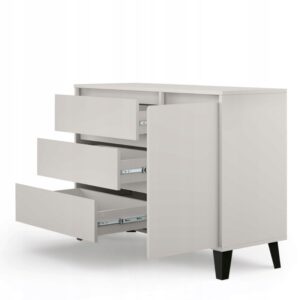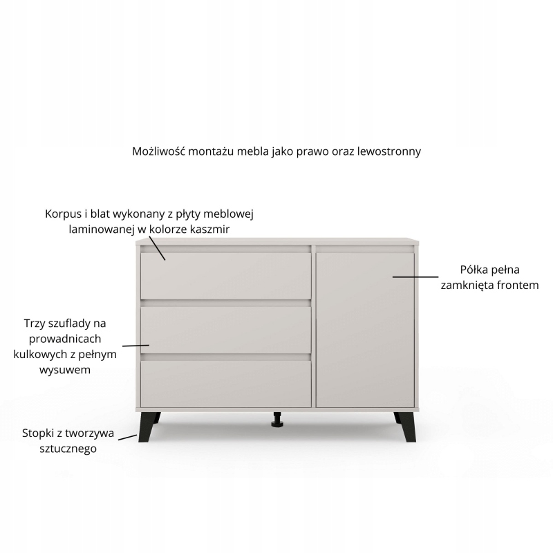 Komoda BORG w kolorze kaszmir z drzwiczkami i 3 szufladami to doskonałe rozwiązanie dla osób poszukujących praktycznego i stylowego mebla do przechowywania. Dzięki swojej konstrukcji oferuje obszerną przestrzeń do organizacji ubrań, bielizny, akcesoriów czy dokumentów.