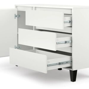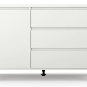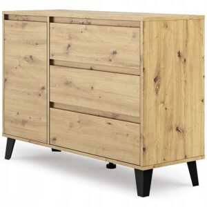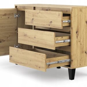 Komoda Borg wyróżnia się nowoczesnym, minimalistycznym designem, który doskonale wpisuje się w aktualne trendy wnętrzarskie. Jej elegancka forma i staranne wykończenie sprawiają, że będzie ona ozdobą każdego pomieszczenia – od salonu, przez sypialnię, aż po przedpokój.