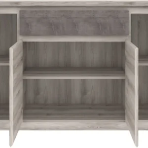 Komoda Jazz to wyjątkowy mebel, który łączy w sobie styl i funkcjonalność, tworząc doskonałe rozwiązanie do nowoczesnego wnętrza. Jej imponujące wymiary – szerokość 166,6 cm, wysokość 95,2 cm i głębokość 40,3 cm – sprawiają, że oferuje przestronną powierzchnię do przechowywania, a elegancki design nadaje wnętrzu wyjątkowego charakteru. Idealnie sprawdzi się w salonie jako miejsce do przechowywania dokumentów czy naczyń, w sypialni, gdzie pomieści ubrania i akcesoria, lub w przedpokoju, organizując przestrzeń na niezbędne przedmioty codziennego użytku. Jej stylowy wygląd harmonijnie komponuje się z różnorodnymi aranżacjami wnętrz, wprowadzając do nich elegancję i nowoczesność. Dzięki tej komodzie każdy pokój zyska na funkcjonalności i estetyce, stanowiąc jednocześnie praktyczny i dekoracyjny element wystroju.
