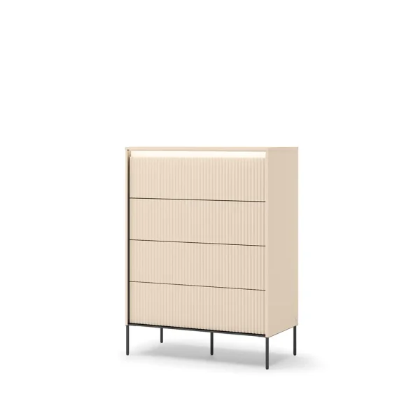 Ryflowane fronty, to połączenie nowoczesnej elegancji i wyjątkowego designu. Ich trójwymiarowa struktura przyciąga wzrok, dodając meblom głębi. Uniwersalny styl i trwałość sprawiają, że są praktyczne, piękne i idealne do każdej aranżacji