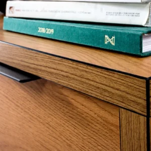 Praktyczna komoda z kolekcji FONTI w kolorze dąb karmel. Po bokach mebla znajdziemy szafki z jedną półką, w których pomieści się wiele rzeczy. Centrum komody wita nas szafką z przeszklonym frontem, w której znajdziemy półkę dzielącą przestrzeń na pół. Nad szafką znajdziemy półkę na różne drobiazgi.Istnieje możliwość dokupienia metalowych nóżek o wysokości 12 cm.
