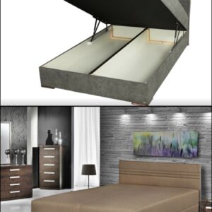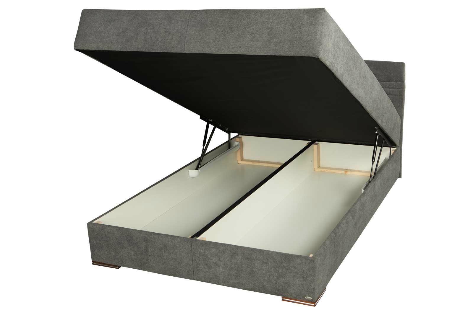 Łóżko z dzielonym pojemnikiem na pościel, podnoszone na automacie gazowym.