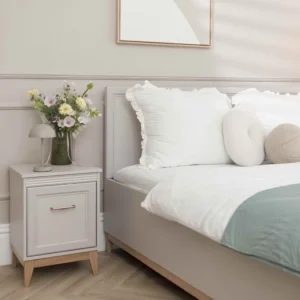 Eleganckie łóżko WINDSOR 160×200 w kolorze kaszmir. Klasyczny styl, frezowane płyciny, drewniane nogi. Idealne łóżko do sypialni – styl i wygoda w jednym. Jeśli szukasz solidnego łóżka do sypialni o eleganckim wyglądzie, model WINDSOR 160×200 będzie idealnym rozwiązaniem. Klasyczny design, wysokiej jakości wykonanie i modna kolorystyka sprawiają, że łóżko świetnie sprawdzi się zarówno w domowych, jak i hotelowych wnętrzach.