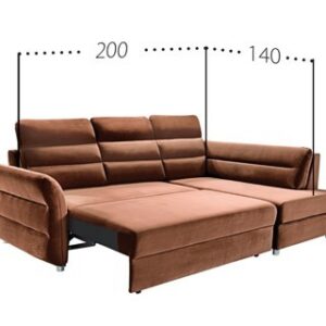 Standardowo narożnik Nitra został wyposażony w trzy regulowane i unoszone oparcia – rozwiązanie to ucieszy każdego o ponadprzeciętnym wzroście. W części krótszej znajdziemy niskie oparcie co optycznie zmniejsza mebel.Posiada pojemnik na pościel o pojemności 245 litrów a w dłuższej części funkcję spania „puma”. Obie te cechy pozwalają na korzystanie z tego mebla także jako z miejsca do spania . Dopełnieniem strony wizualnej jest wygięty dekoracyjnie przeszyty boczek oraz oparcia .