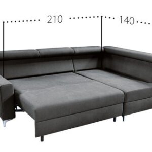 Mimo kompaktowych rozmiarów narożnik wyposażony jest w pełnowymiarowe spanie 140×200 (system rozkładania „puma”) oraz duży pojemnik na pościel o pojemności 245 litrów. Wysokie nogi umożliwiają sprzątanie pod nim robotom sprzątającym.