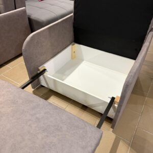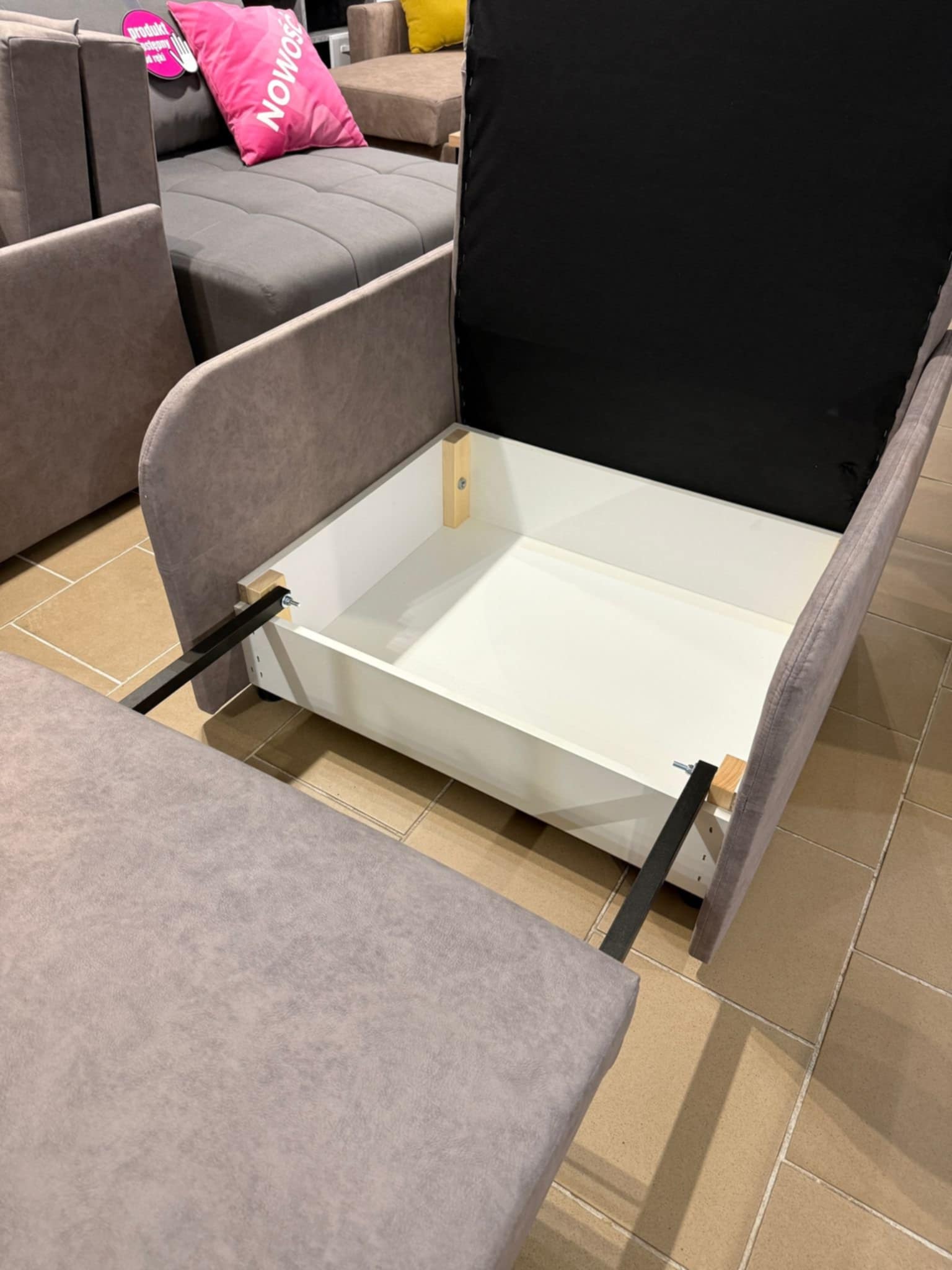 Sofa posiada funkcję spania oraz pojemnik na pościel
