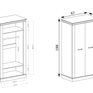 Dwudrzwiowa szafa z kolekcji Antica. Idealna do dobrej organizacji twoich ubrań i różnych akcesoriów. Szafa posiada dwie pojemne półki, które pomieszczą wiele rzeczy, które nie wymagają powieszenia. Drążek w szafie pozwala nam zagospodarować przestrzeń szafy oraz udoskonala rozmieszczenie twoich rzeczy. Mebel pasuje do każdego typu pomieszczeń, wprowadzi ciepłą atmosferę, a metalowe uchwyty podkreślą jego charakter. Cichy domyk w drzwiach uwydatnia delikatność szafy. Dostępna w kolorze Kraft zloty