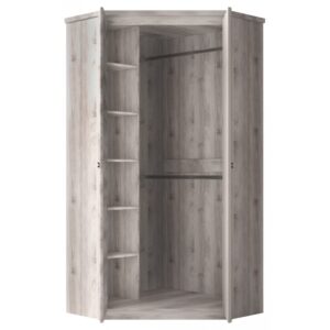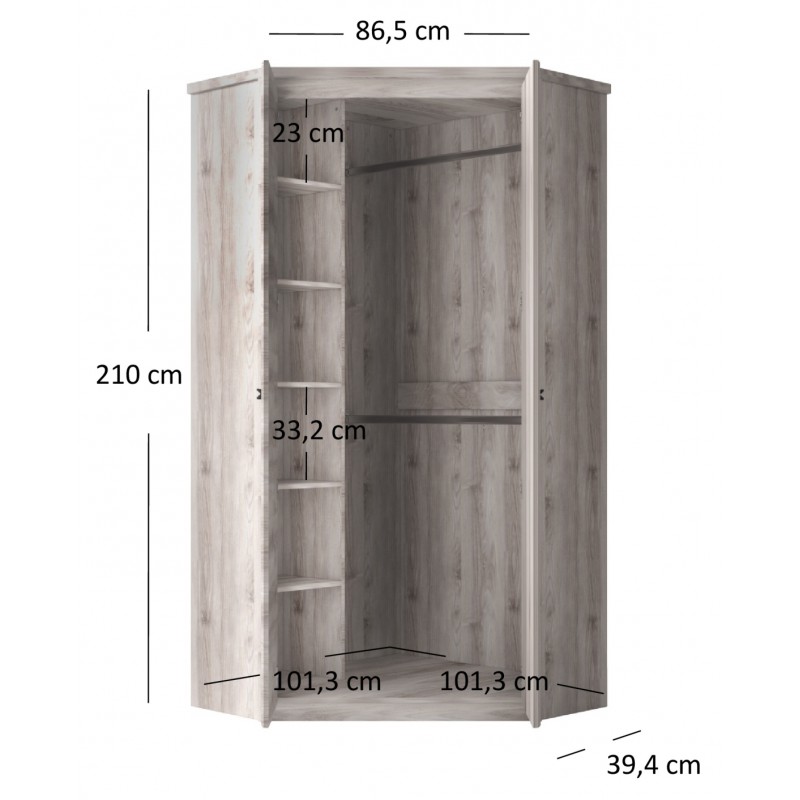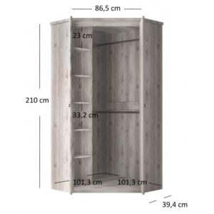Szafa narożna 2d z kolekcji JAZZ wyróżnia się ciemnymi sękami, które podkreślają jasny dekor mebla, doskonale wpasuje się w każdy rodzaj aranżacji. Szafa jest ważną częścią każdej sypialni, dzięki swojej dużej pojemności pomieści ogromną ilość ubrań ręczników oraz pościeli. Doskonale sprawdzi się w połączeniu z innymi meblami z kolekcji takimi jak komoda lub półka, można przez to stworzyć niebanalną kompozycję.