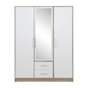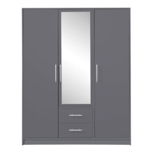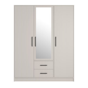 Szafa z kolekcji Smart,to nowoczesny i funkcjonalny mebel, idealnie pasujący do każdej sypialni. Wyposażona w dwie szuflady oraz czworo drzwi, za którymi znajdują się półki oraz drążki na wieszaki, oferuje mnóstwo miejsca do przechowywania i tworzy spójną aranżację z pozostałymi meblami z kolekcji Smart.