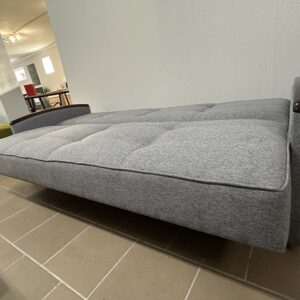 Ponadczasowa wersalka z drewnianymi wąskimi  bokami w kolorze orzech.