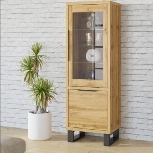 Wykonana z wysokiej jakości materiałów, witryna prezentuje się elegancko i solidnie. Jej przeszklone drzwiczki pozwalają wyeksponować ulubione przedmioty, takie jak kieliszki, porcelana czy ozdoby, jednocześnie chroniąc je przed kurzem i zabrudzeniami.