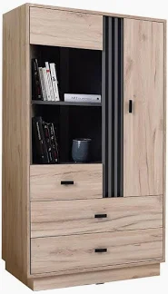 Kolekcja posiada czarne uchwyty, które w połączeniu z kolorem naturalnego drewna sprawiają wrażenie ciepłego i przytulnego pomieszczenia.